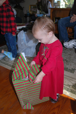 On the day after Christmas, we piled i the car and drove down to Houston to celebrate Christmas with my Grandma Karen, Grandpa David, Aunt Julie, Uncle Andy, Jack, Alex, Palina, Sofia, and David. Wow! That's a big party! Marley was a great sport on the way down there, sleeping the entire way, which is becoming a habit of her's lately! We got there around noon and spent the afternoon opening presents, visiting with everyone, and eating some delicious fajitas.